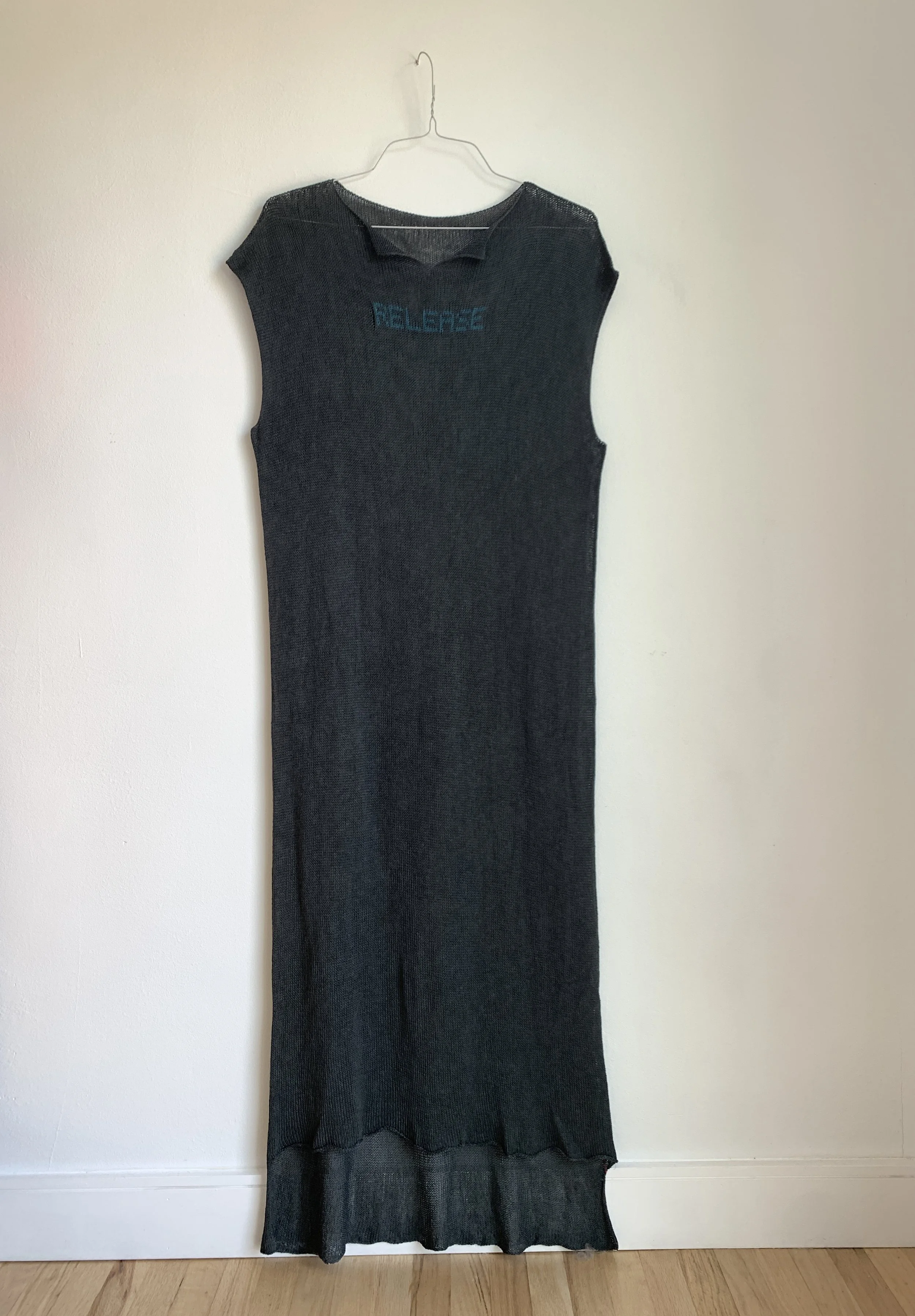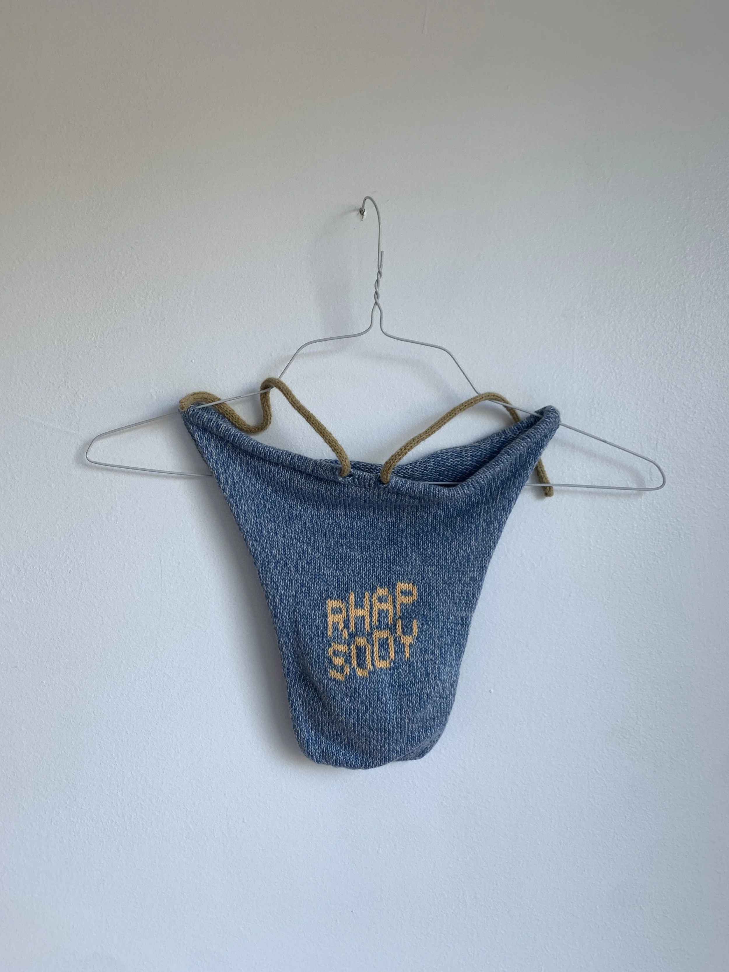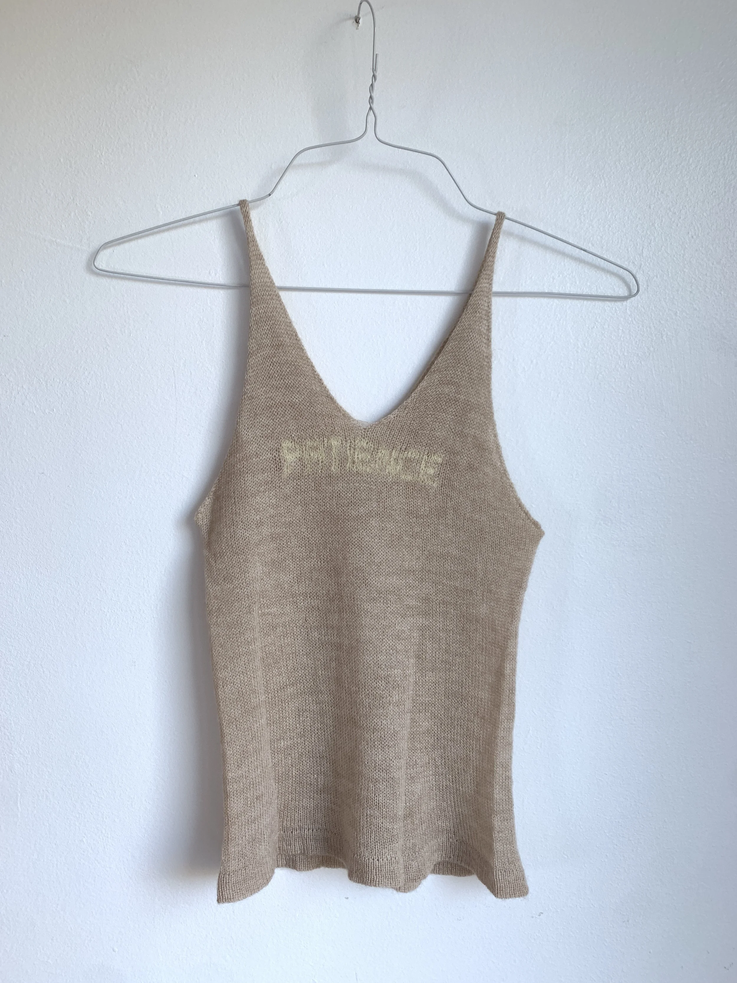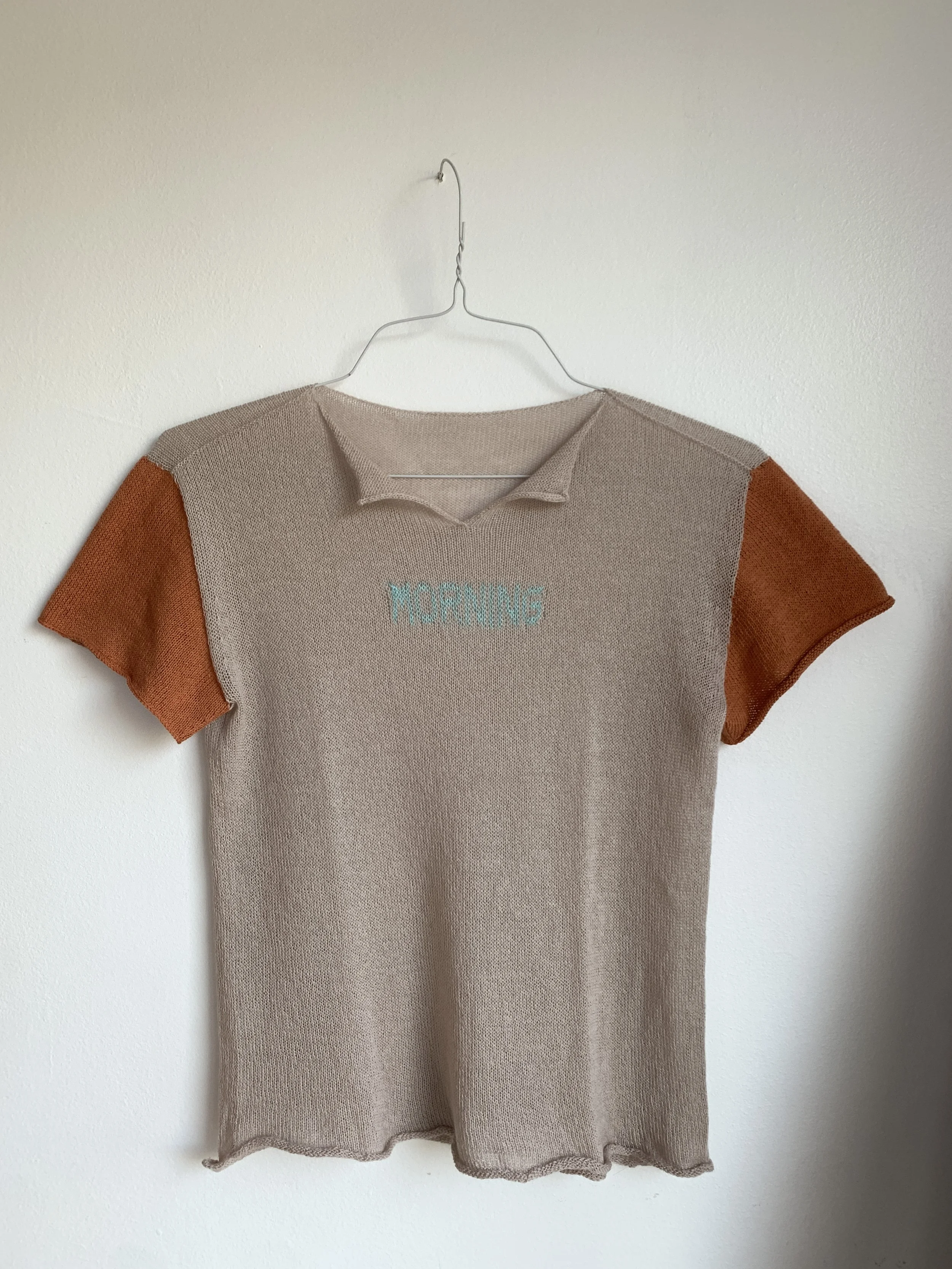 Linen, silk, and mohair knit textile on wooden stretchers, 15 x 10 inches, 2025